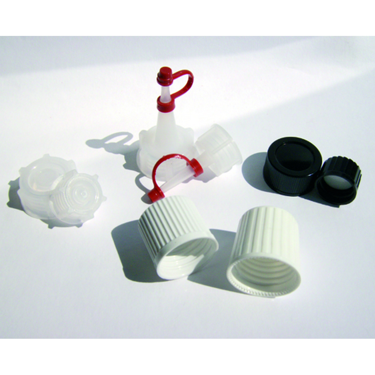 Tappi per bottiglie quadrateTappo a spruzzetta in PP, bianco, per bo